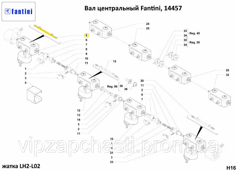 Вал центральный редуктора кукурузной жатки Fantini 14457 / 14458
