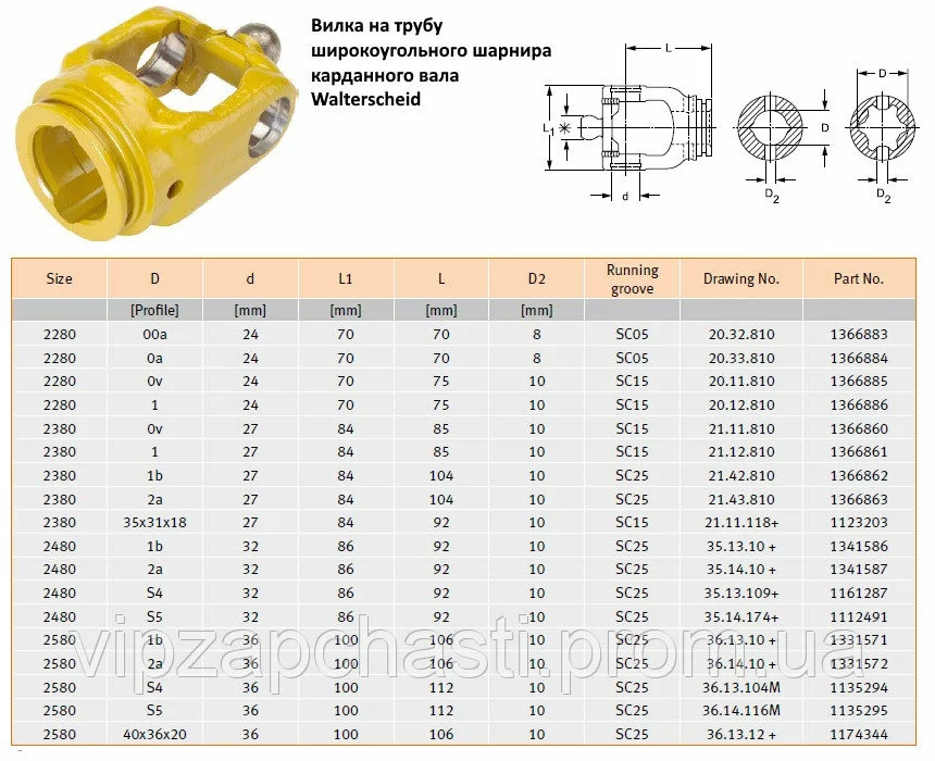 Вилка широкоугольного шарнира на трубу Walterscheid