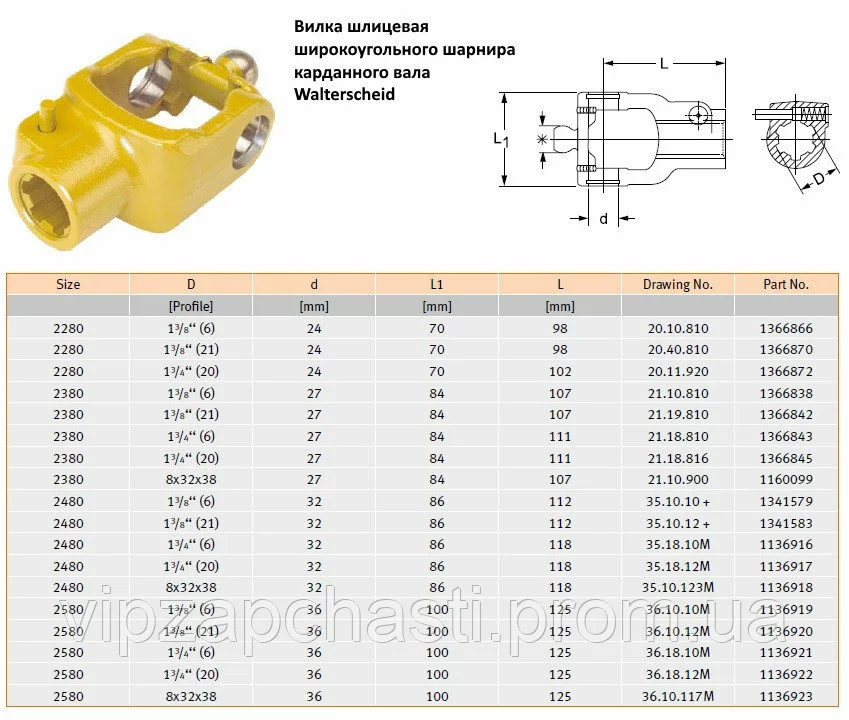 Вилка широкоугольного шарнира шлицевая Walterscheid
