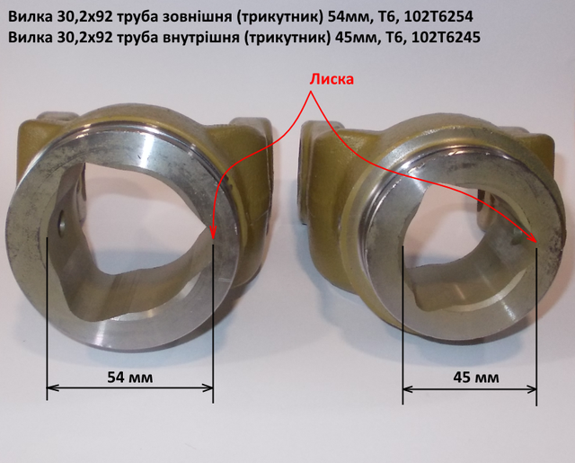 Вилка на трубу внутреннюю (треугольник) 45мм под крестовину 30,2х92 мм