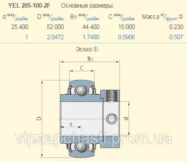 YEL205-100-2F подшипник дюймовый