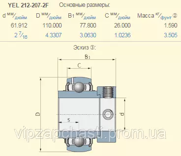 YEL212-207-2F подшипник дюймовый