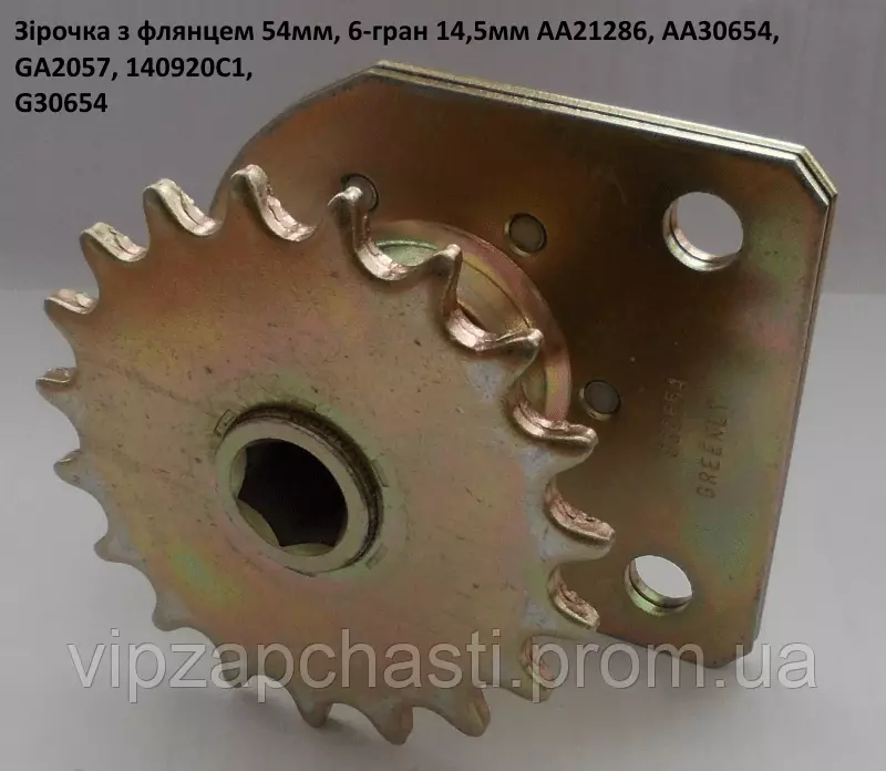 Звездочка на сеялку John Deere, Kinze, 54мм, 6-гран 14,5мм AA30654, аналоги AA21286, GA2057, 140920C1, G30654, SPR 300-ZP Lutco